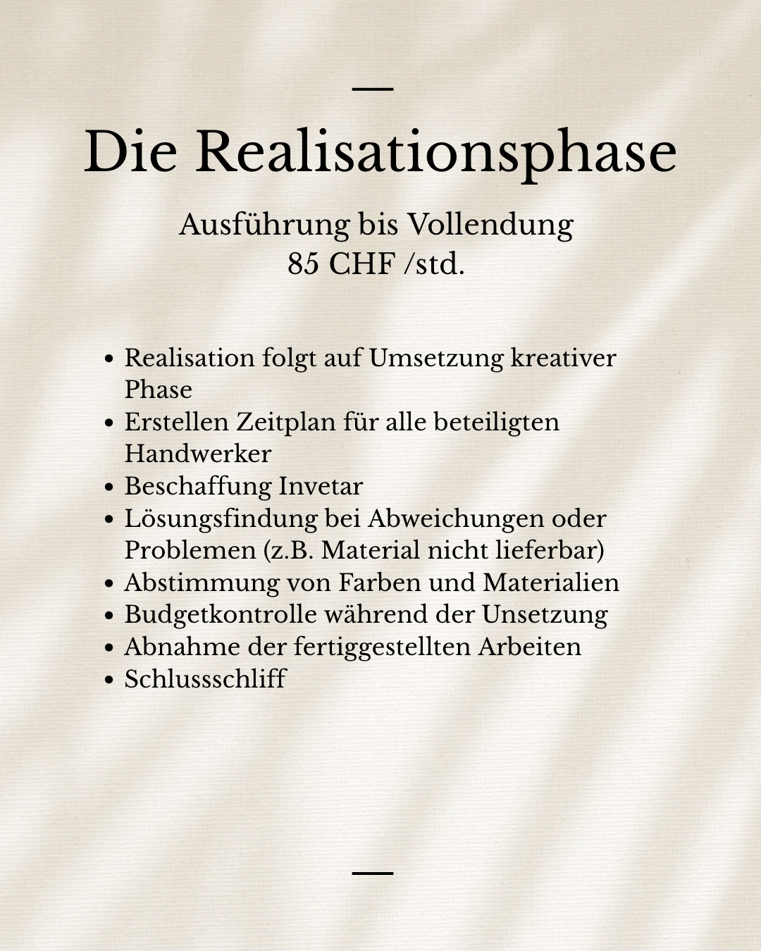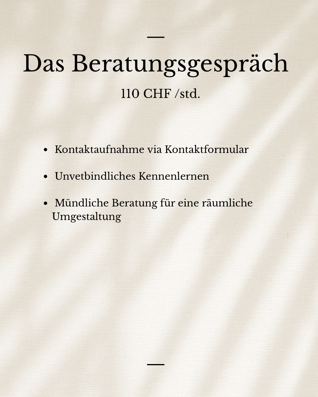 - Gerne begleite ich dich auch zu einem Händler/ Einrichtungshaus (65 CHF/Std. zzgl.Anfahrt)